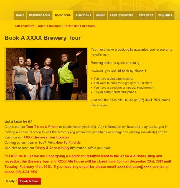 Both the XXXX Alehouse and Boags utilise the WebVantage Booking Management System to manage their tour operations. This not only provides a way for customers to make bookings through their respective websites but also allows staff to manage the day to day logistics of running the operation.