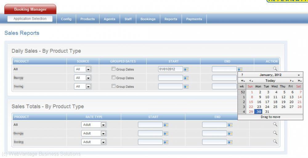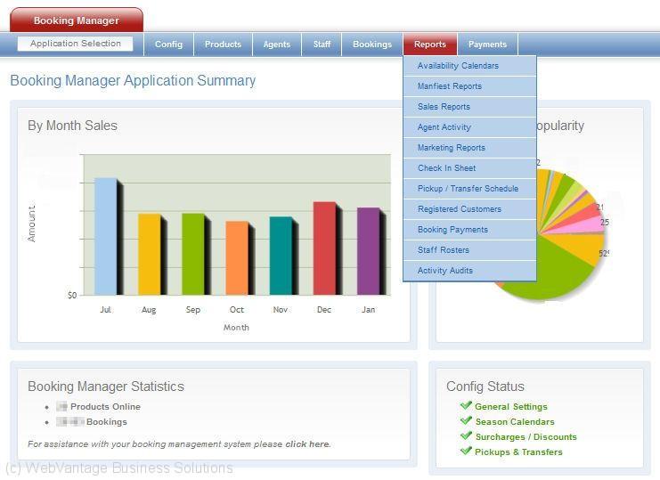 Main dashboard with reports menu